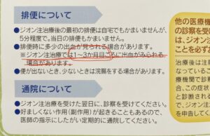 私は「ジオン注治療では1~3ヶ月目ごろに出血が見られる場合があります」に当てはまってしまったようです。