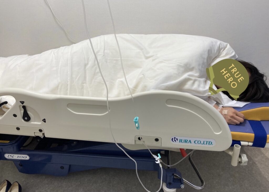 元の部屋(ブース的な)へベッドで移動したら点滴が落ち切るのを待ちます。
