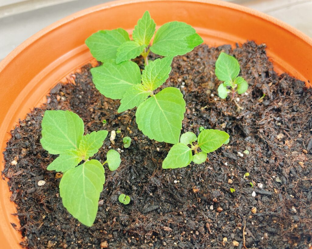その後芽が出て気分を良くした夫が他の空いた鉢にも大葉を植えたので大葉の鉢が2つになった😅