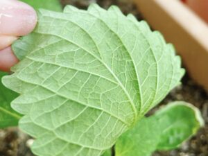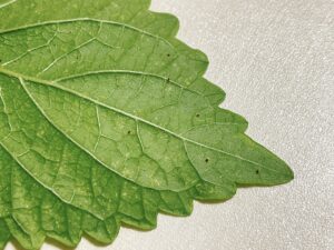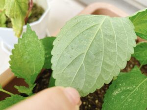 早朝にスプレーした青じそを1枚取ってよぉ~く観察すると…