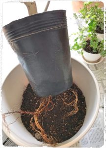 思ってたより根っこがヤバいです。鉢の底から根っこが出て絡まってたので、今回は仕方なく根っこをはさみで切って引き抜きました。