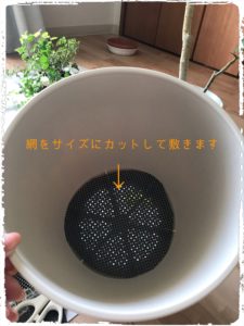 鉢底網・・・鉢底石や土などが流れ出ないように鉢底の穴の上に敷きます。