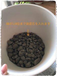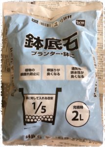 鉢底石・・・水はけと通気性を良くするために鉢の底に入れます(鉢底石2L ¥159税込)