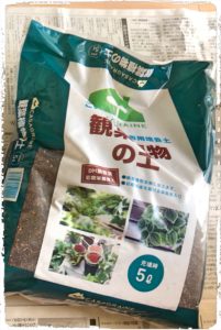 市販されている観葉植物の土は水はけもよく、室内で育てるウンベラータには最適です。(観葉植物の土5L ¥429税込)