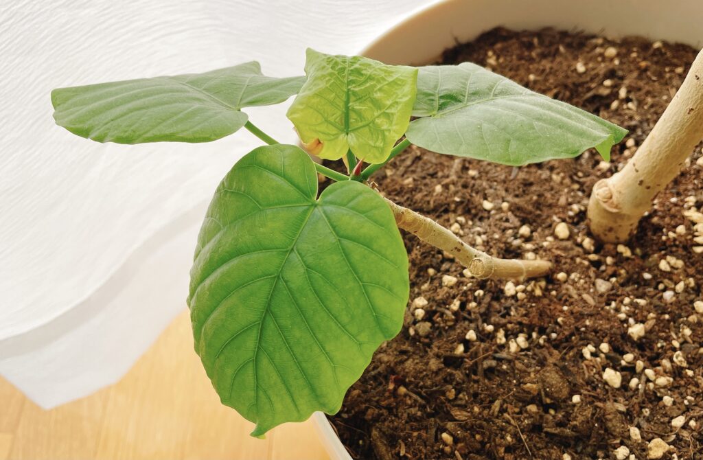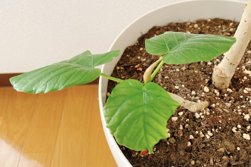 我が家のウンベラータの枝ぶりはとてもシンプル!メインの枝と根元にサブの小さな枝の2本です。