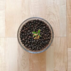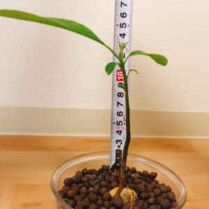 一瞬で!いやマジで!あれ?と思ったらイキナリ葉が一枚だけ巨大化していました。2か月経ってやっと葉が1枚というスローペースですが、やることが突然なので驚かされます😂