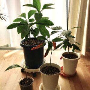 冬の間に20cmも成長したアボカドもあれば、逆に一番成長しそうな苗が全く伸びてなかったりで、我が家でアボカドの冬の成長の平均値を出すのは困難でしたが、屋内で管理していれば少々寒くても成長し続けることが分かりました。
