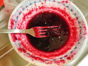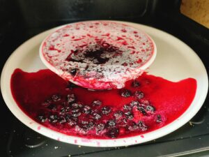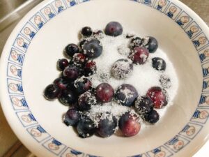 - 耐熱容器にブルーベリーと砂糖を入れてラップをしてレンジへGO!