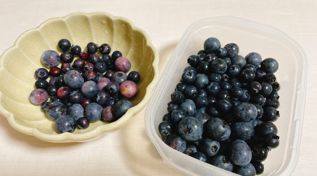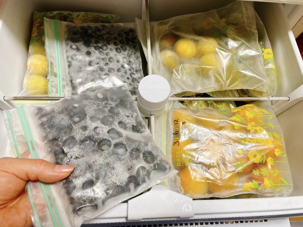 我が家の冷凍庫は既に6月に収穫した梅が占拠している状況で冷凍ブルーベリーが加わるのは想定外だった💦