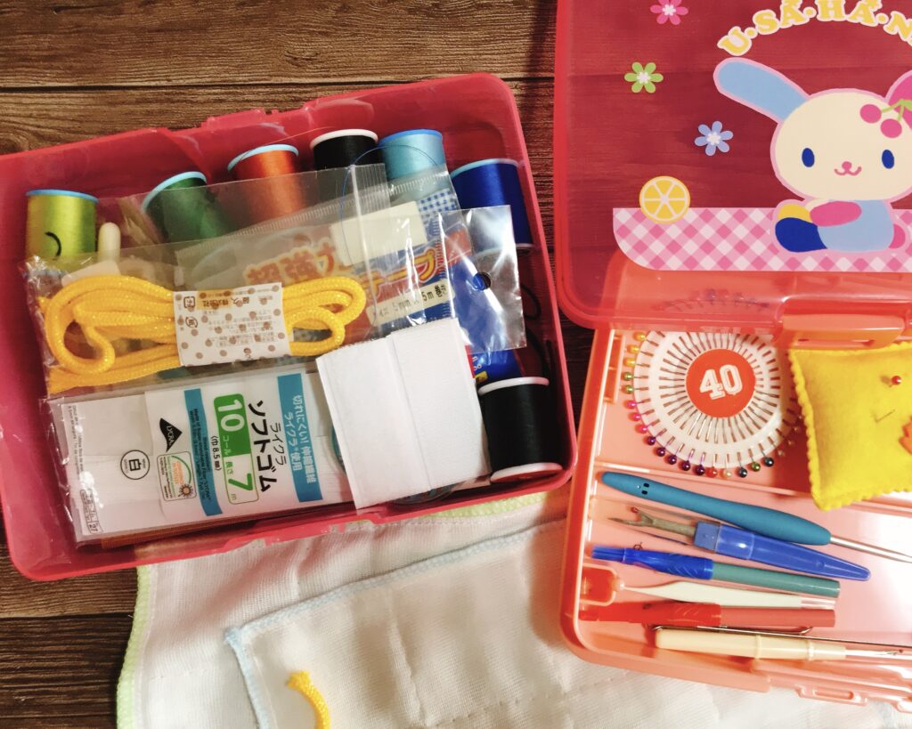 お裁縫道具の中にある黄色い紐がふきん用です。