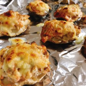 🌸みじん切りにしたしいたけの軸と明太子とマヨネーズを混ぜてしいたけの上に乗せチーズをかけて(魚焼きグリルで)焼きました。しいたけの軸には旨味がたっぷりなので全て使いたいですね💕