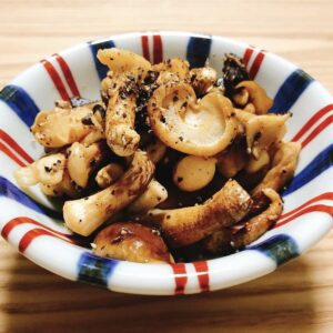 🌸食べやすく切ったしいたけにしょうゆとみりん少々を絡めてレンジでチン♪したものに黒コショウをたっぷり絡めた簡単おつまみです✨