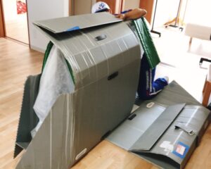 ・46型のテレビもあっという間に梱包!