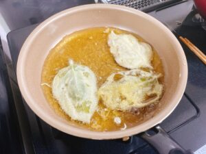 作り方は普通の天ぷらと同じです。天ぷらの素材が「柿の葉っぱ」というだけ。