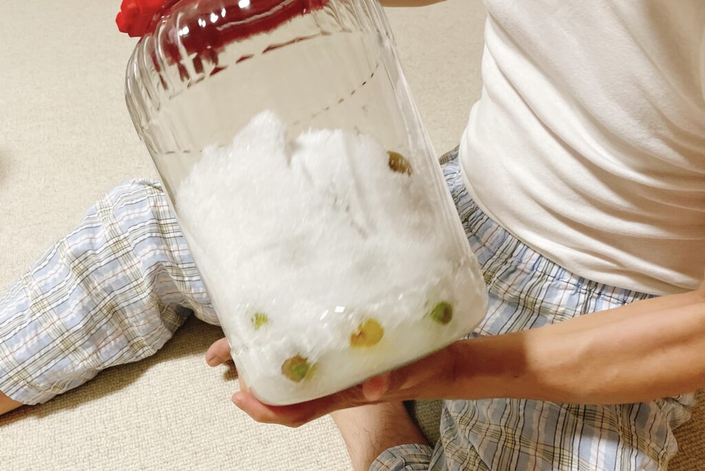 最近は部屋の中の温度が上がってムシムシする日が続いているので今仕込んでいる追い梅ジュースも早く冷蔵庫で保存しなきゃと焦ってます💦