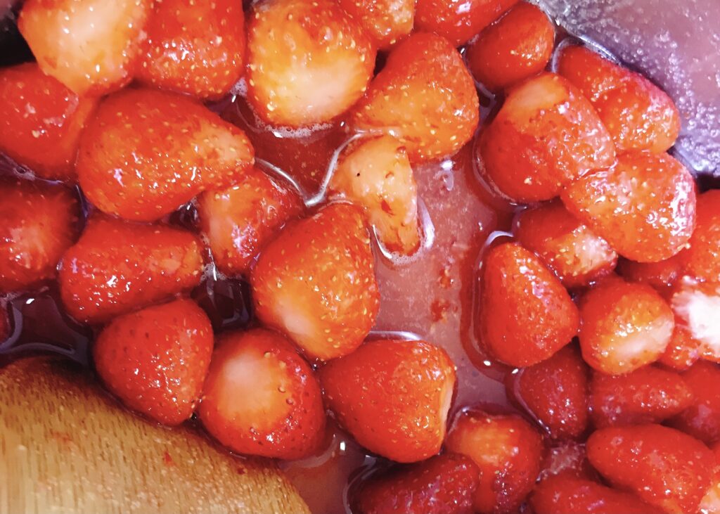 固めのイチゴを使ったので中々イチゴの形が崩れないと焦っていましたが30分経つ頃には勝手にジャム状になってました👌