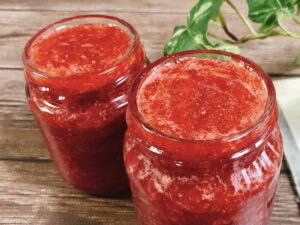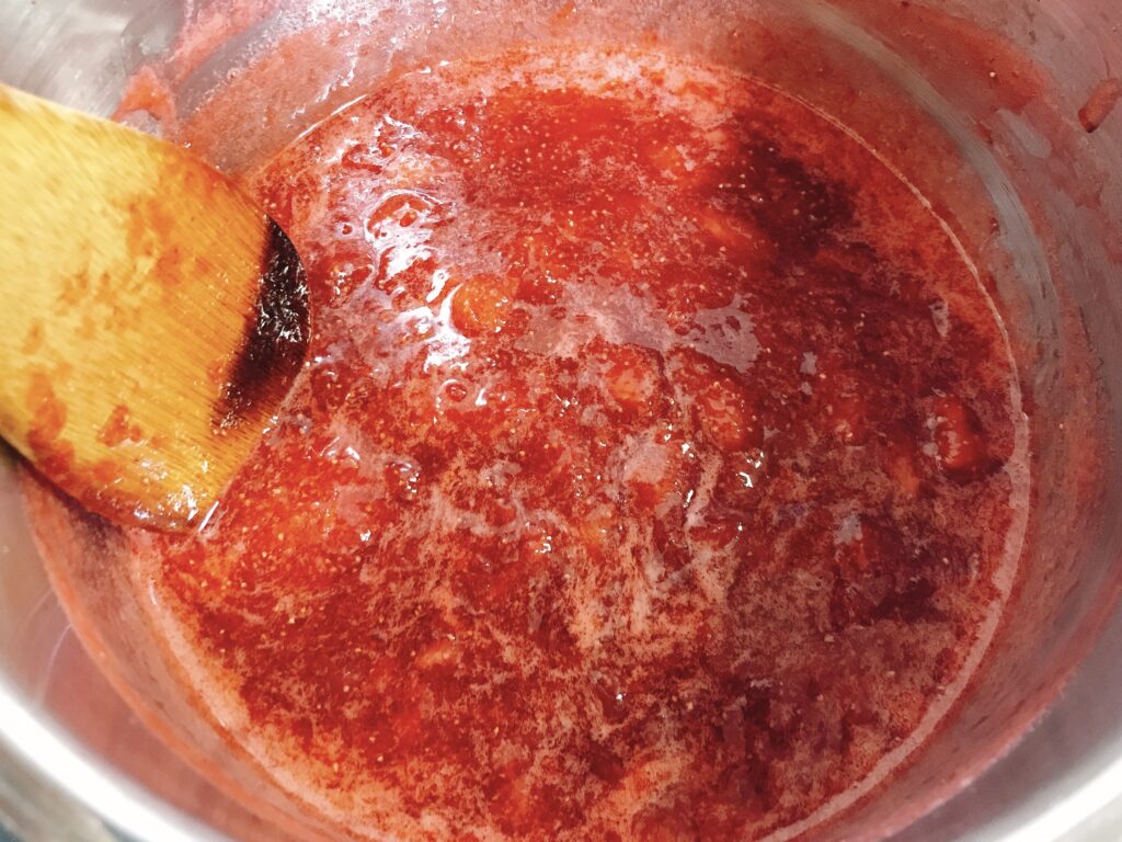 手作りイチゴジャムの赤色が意外にも鮮やか