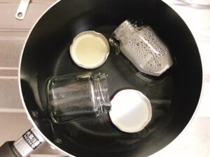 今回はジャムの空き瓶2個分を煮沸しておきました。