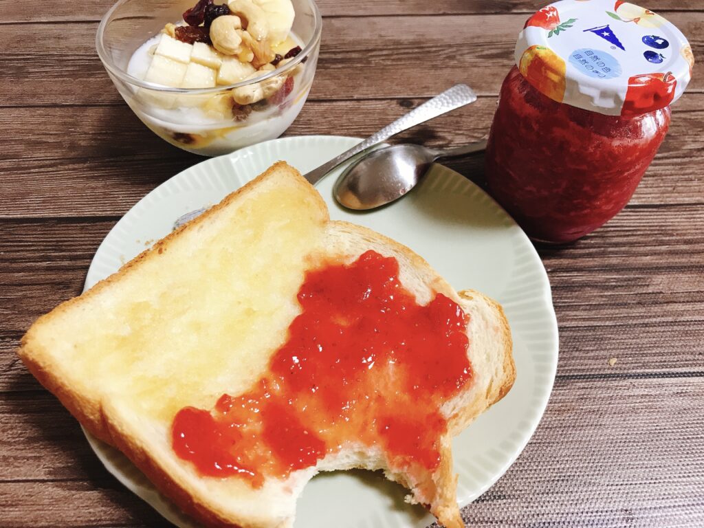 トーストにはバターも好きなので半分はバターで半分は手作りジャムにしました♪