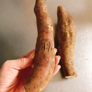 野菜の名前は「ヤーコン」全く興味をそそられないビジュアルなのに添えられた説明に惹かれて買ってみました。